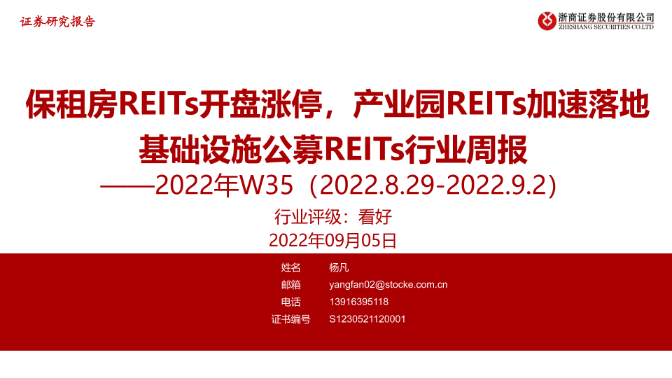 【浙商证券】【20220905】基础设施公募REITs行业周报-17页