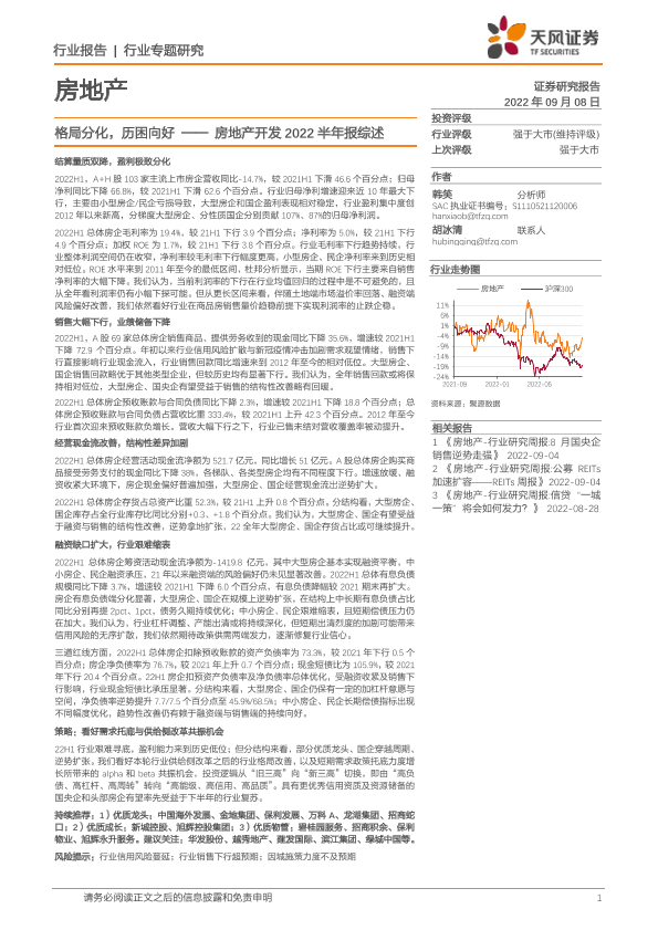 【天风证券】【20220908】房地产开发2022半年报综述:格局分化,历困向好-21页