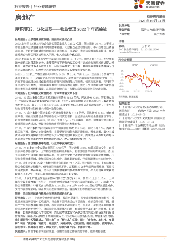 【天风证券】【20220911】物业管理2022半年报综述-厚积薄发,分化进取-21页