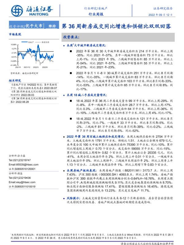 【海通证券】【20220912】第36周新房成交同比增速和供销比双双回落-6页