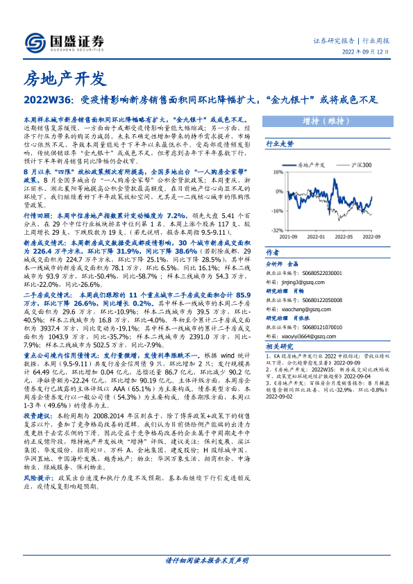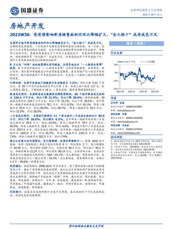 【国盛证券】【20220912】房地产开发2022W36:受疫情影响新房销售面积同环比降幅扩大,“金九银十”或将成色不足-14页