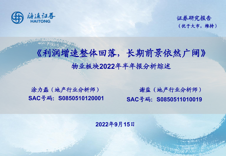 【海通证券】【20220915】利润增速整体回落,长期前景依然广阔-27页