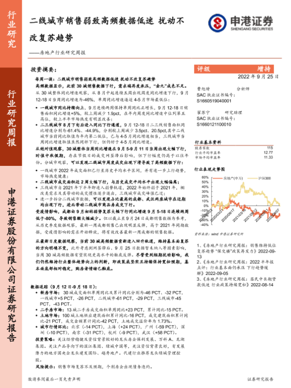 【申港证券】【20220925】二线城市销售弱致高频数据低迷 扰动不改复苏趋势-12页