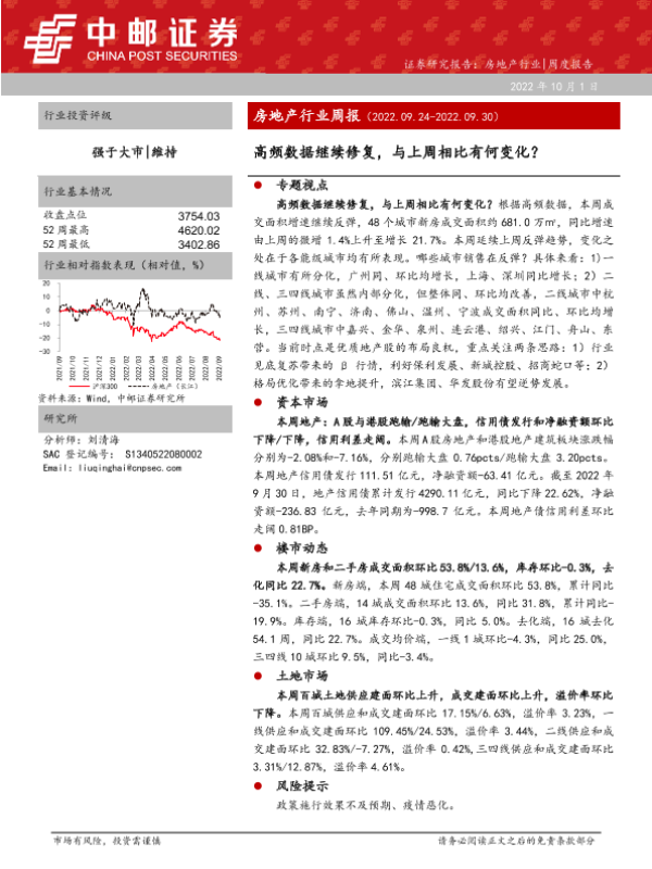【中邮证券】【20221001】房地产行业周报:高频数据继续修复,与上周相比有何变化?-39页