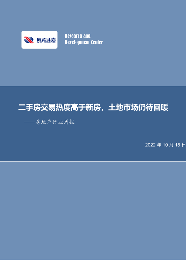 【信达证券】【20221018】二手房交易热度高于新房,土地市场仍待回暖-20页