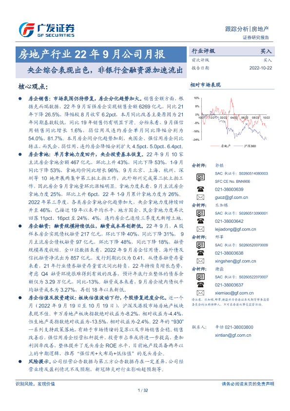 【广发证券】【20221022】房地产行业22年9月公司月报:央企综合表现出色,非银行金融资源加速流出-32页