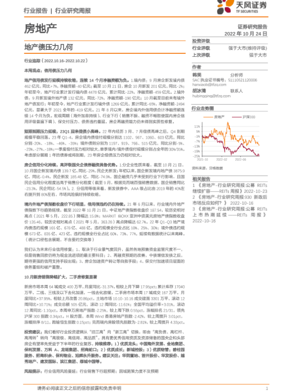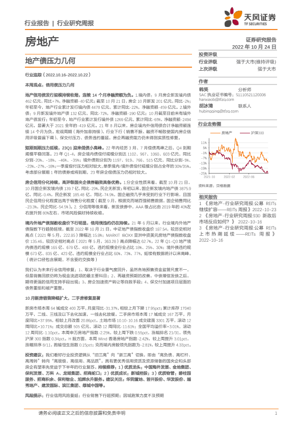【天风证券】【20221024】房地产行业研究周报:地产债压力几何-16页