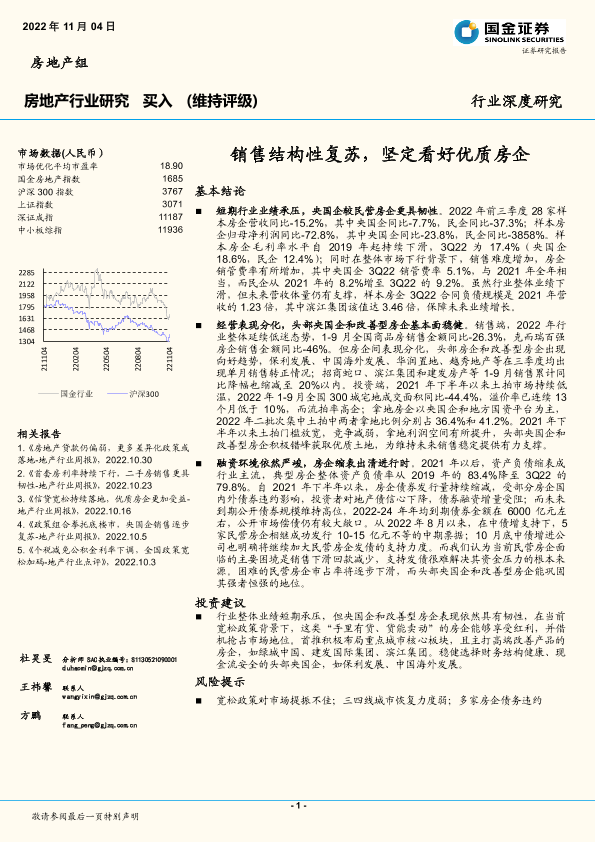 【国金证券】【20221104】房地产行业深度研究:销售结构性复苏,坚定看好优质房企-16页