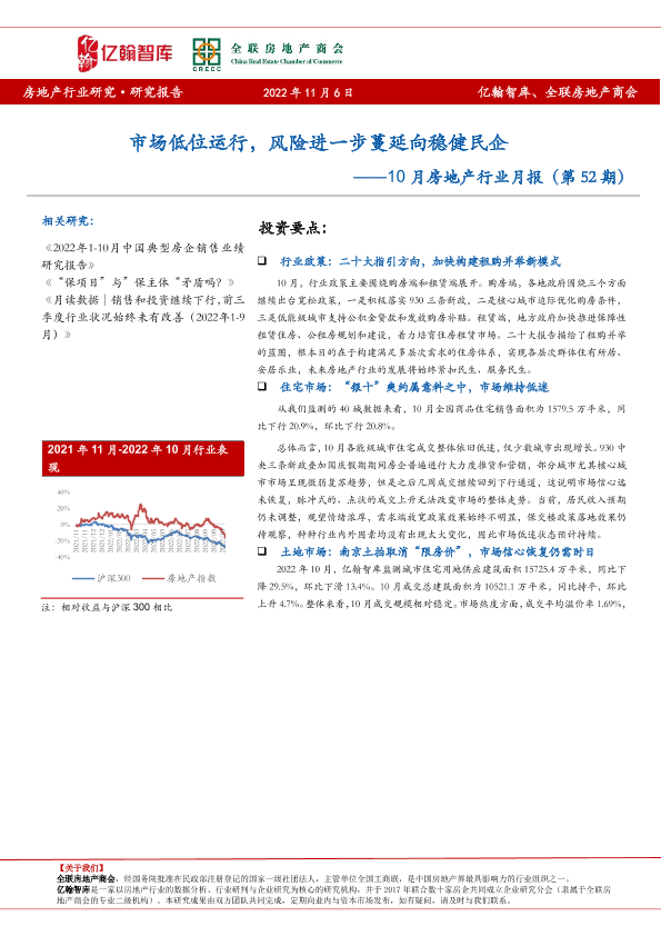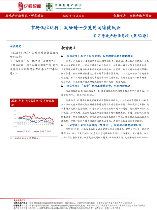 【亿翰智库】【20221106】10月房地产行业月报:市场低位运行,风险进一步蔓延向稳健民企-23页