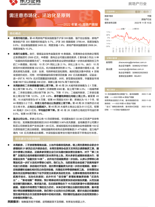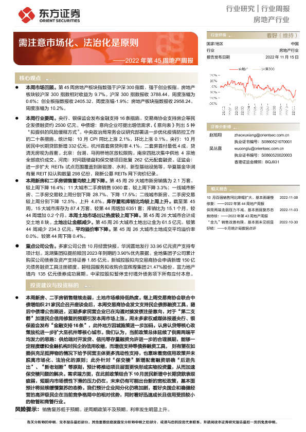【东方证券】【20221115】2022年第45周地产周报:需注意市场化、法治化是原则-15页