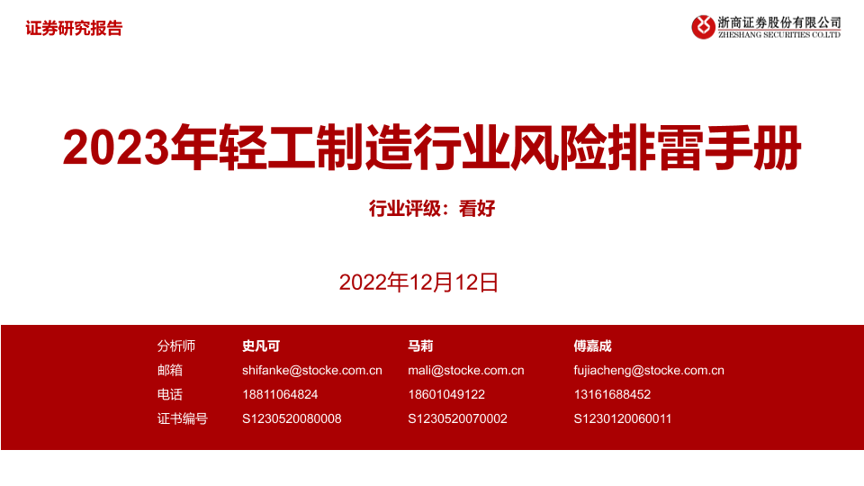 【浙商证券】【20221212】2023年轻工制造行业风险排雷手册-23页