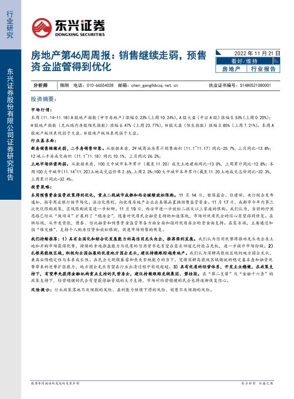 【东兴证券】【20221121】房地产第46周周报:销售继续走弱,预售资金监管得到优化-21页