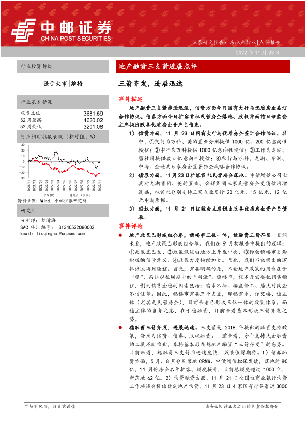 【中邮证券】【20221123】地产融资三支箭进展点评:三箭齐发,进展迅速-12页