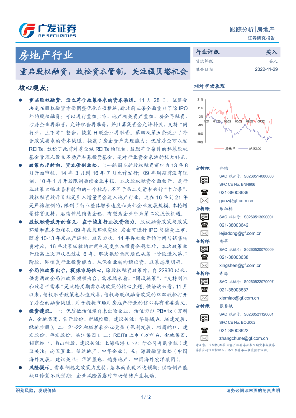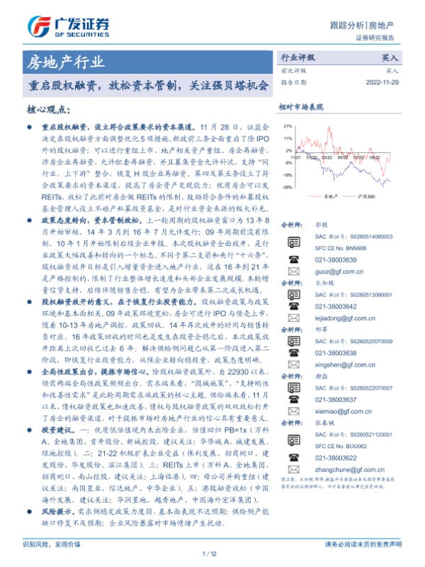 【广发证券】【20221129】房地产行业跟踪分析:重启股权融资,放松资本管制,关注强贝塔机会-12页