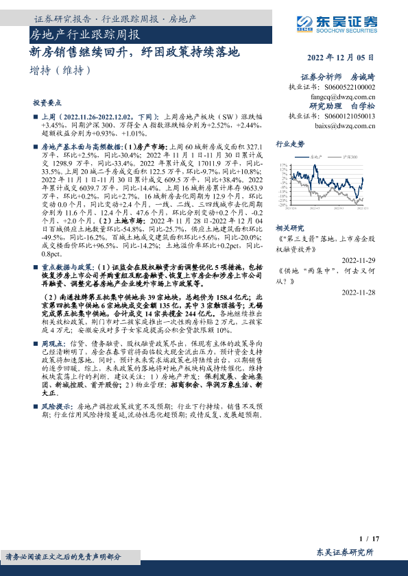 【东吴证券】【20221205】房地产行业跟踪周报:新房销售继续回升,纾困政策持续落地-17页