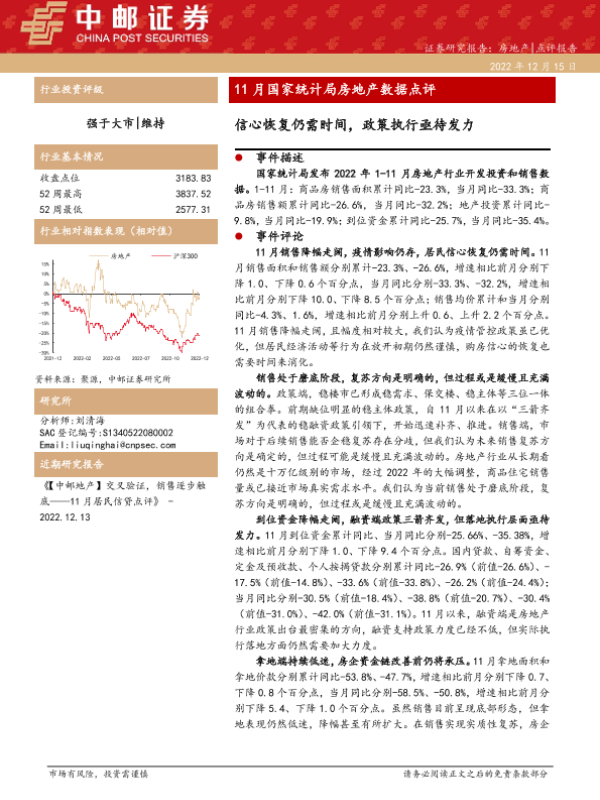 【中邮证券】【20221215】11月国家统计局房地产数据点评:信心恢复仍需时间,政策执行亟待发力-11页