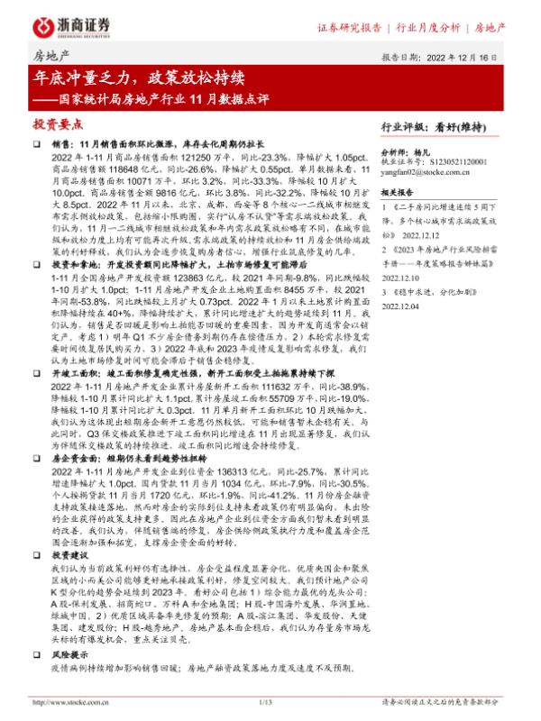 【浙商证券】【20221216】国家统计局房地产行业11月数据点评:年底冲量乏力,政策放松持续-13页