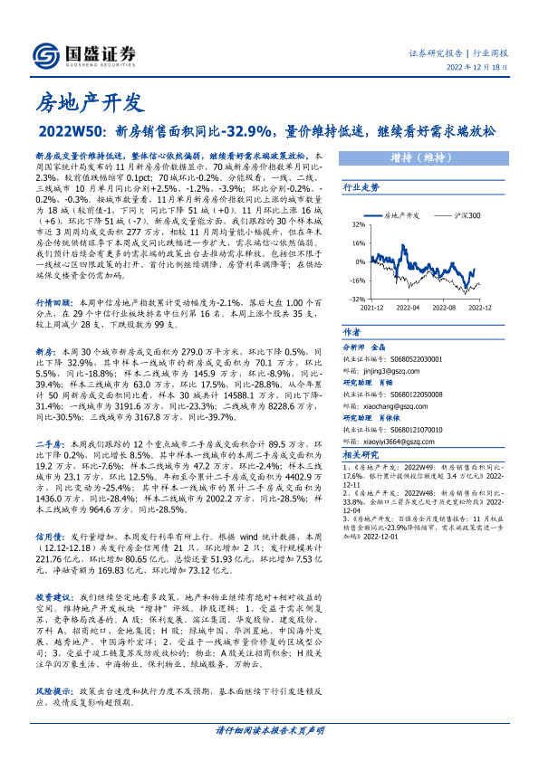 【国盛证券】【20221218】2022W50:新房销售面积同比-32.9%,量价维持低迷,继续看好需求端放松-14页