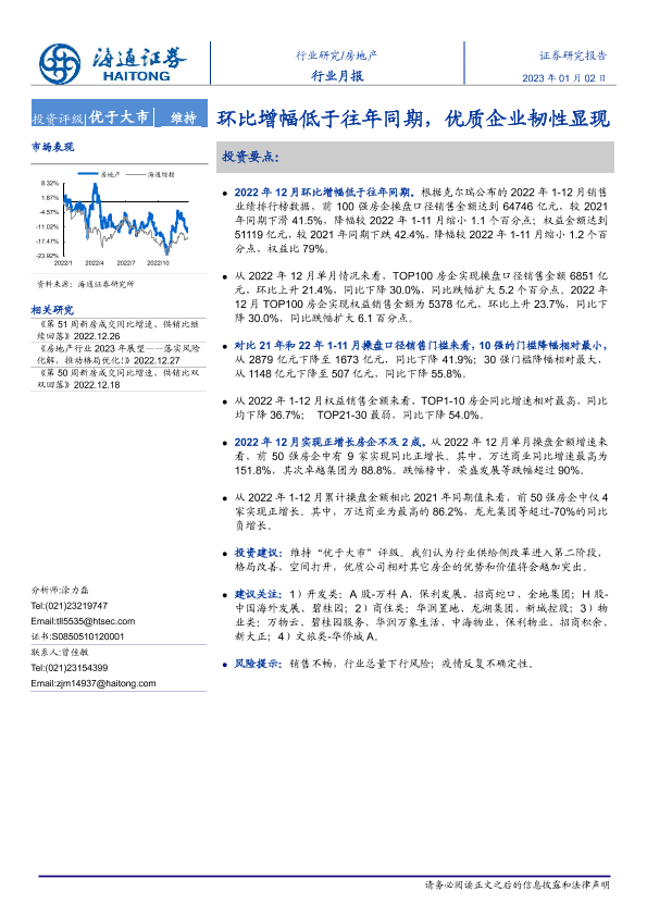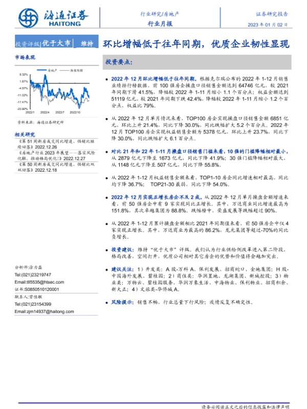 【海通证券】【20230102】房地产行业月报:环比增幅低于往年同期,优质企业韧性显现-11页