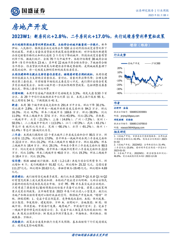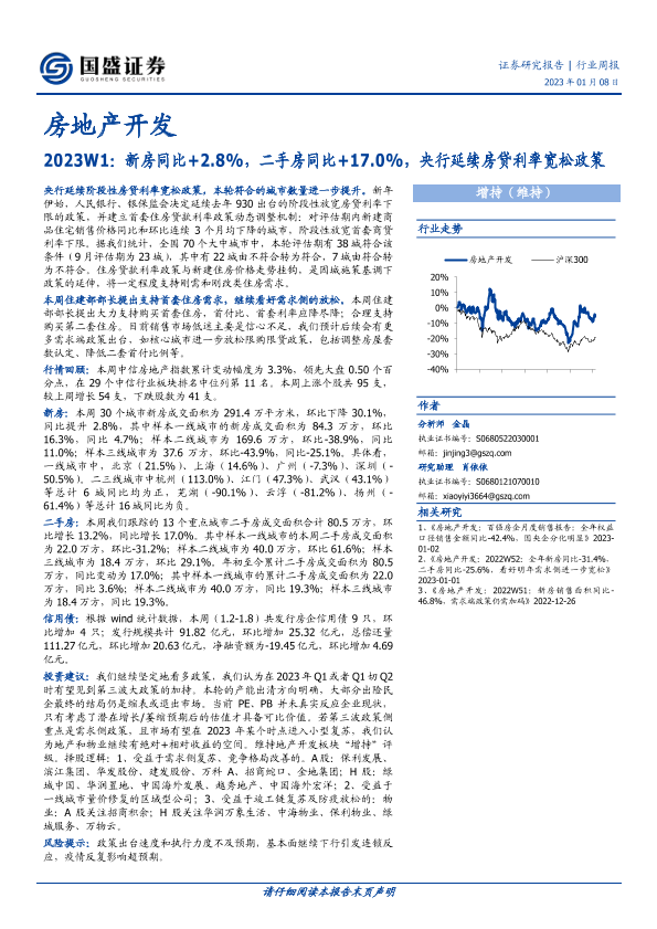 【国盛证券】【20230108】房地产开发2023W1:新房同比+2.8%,二手房同比+17.0%,央行延续房贷利率宽松政策-14页