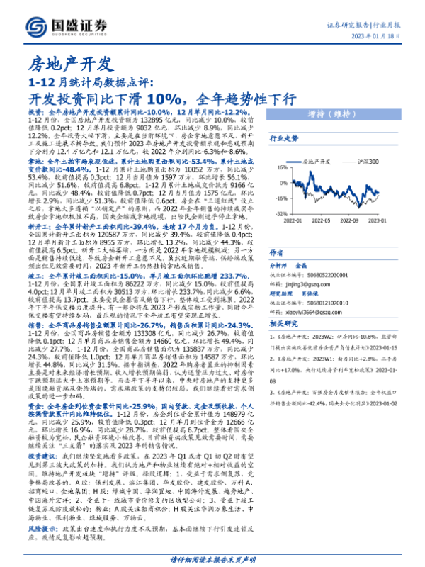 【国盛证券】【20230118】开发投资同比下滑10%,全年趋势性下行-14页