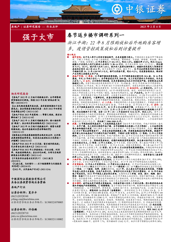 【中银证券】【20230204】春节返乡楼市调研系列一-浙江平湖:22年8月限购放松后外地购房客增多,疫情管控政策放松后到访量提升-20页
