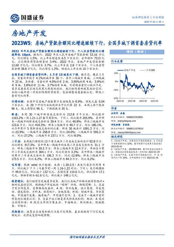 【国盛证券】【20230205】房地产开发行业周报2023W5:房地产贷款余额同比增速继续下行,全国多城下调首套房贷利率-13页