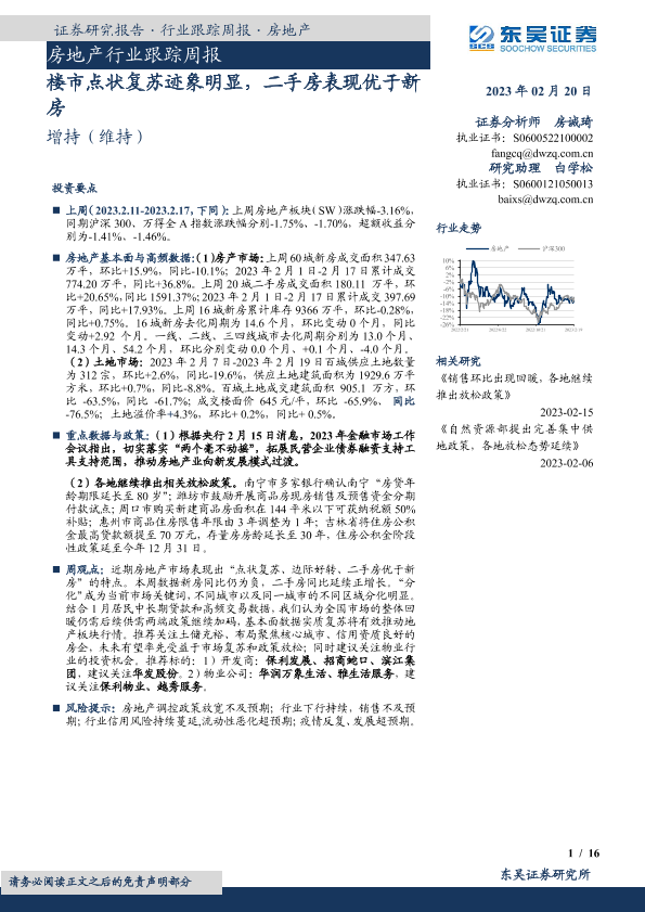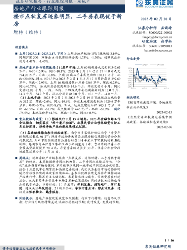【东吴证券】【20230220】楼市点状复苏迹象明显,二手房表现优于新房-16页