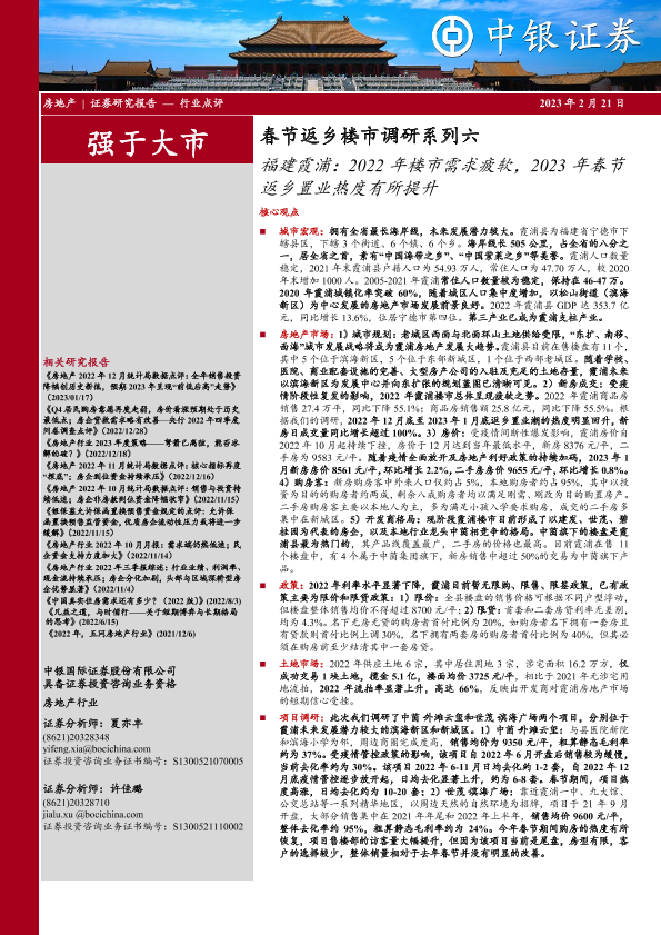 【中银证券】【20230221】春节返乡楼市调研系列六:福建霞浦:2022年楼市需求疲软,2023年春节返乡置业热度有所提升-21页