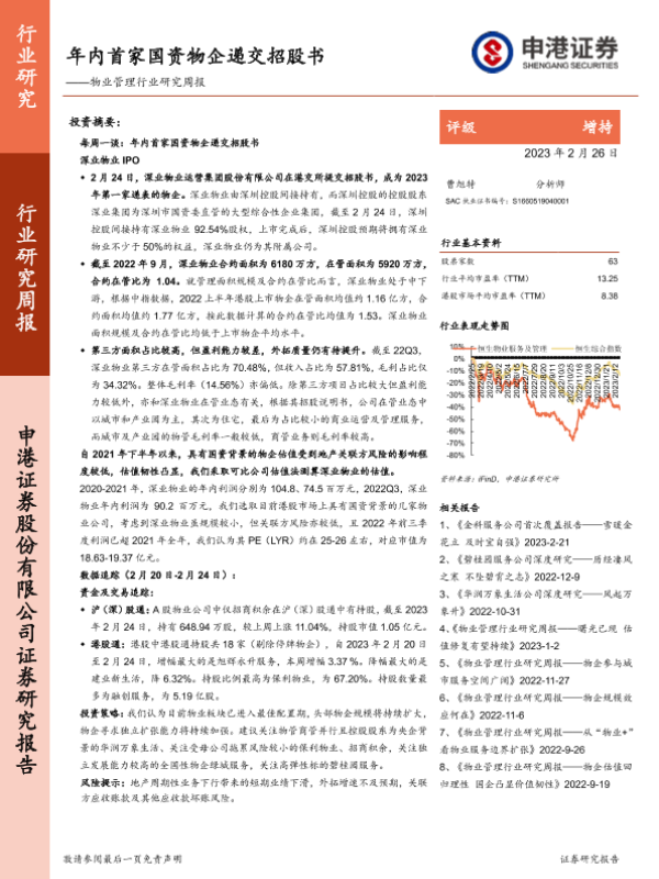 IPO 估值分析 国资背景 行业研究 物业管理