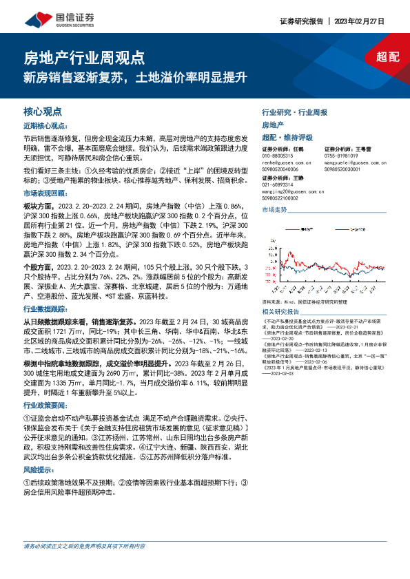 【国信证券】【20230227】房地产行业周观点:新房销售逐渐复苏,土地溢价率明显提升-12页