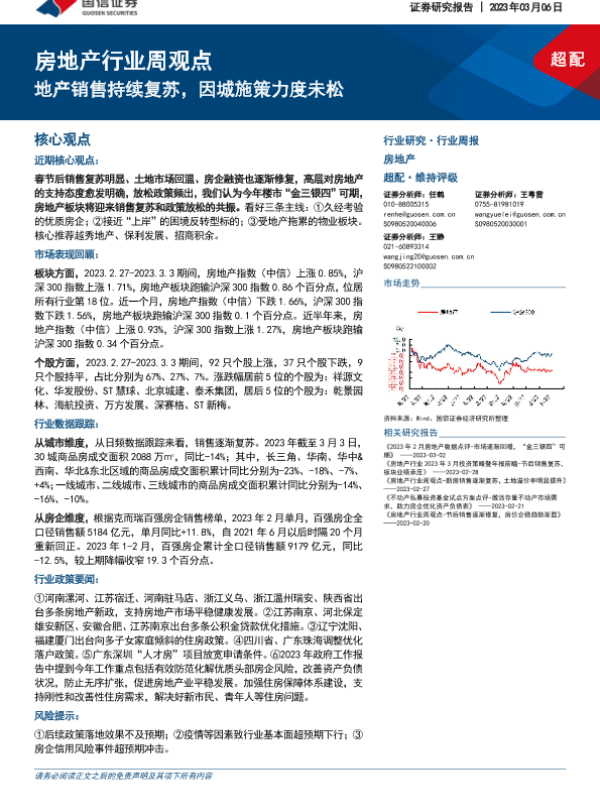 【国信证券】【20230306】房地产行业周观点:地产销售持续复苏,因城施策力度未松-12页