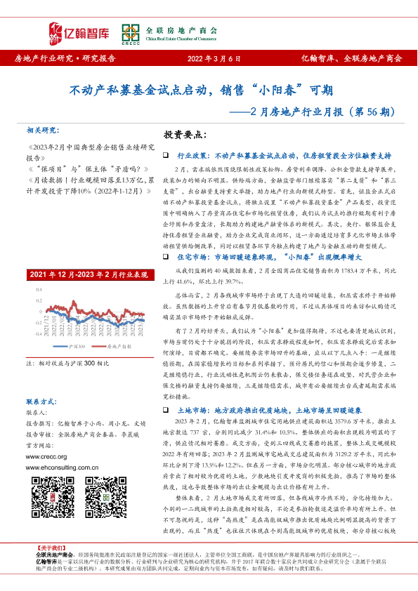 【亿翰智库】【20230306】2月房地产行业月报:不动产私募基金试点启动,销售“小阳春”可期-22页