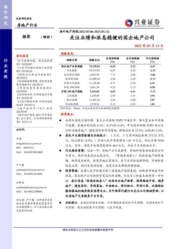 【兴业证券】【20230313】海外地产周报:关注业绩和派息稳健的国企地产公司-13页