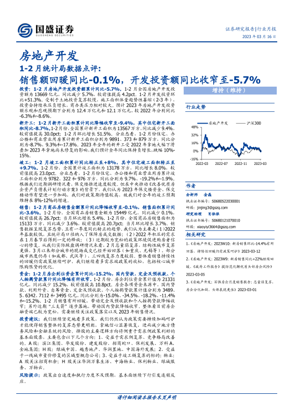 【国盛证券】【20230316】1-2月统计局数据点评:销售额回暖同比-0.1%,开发投资额同比收窄至-5.7%-12页