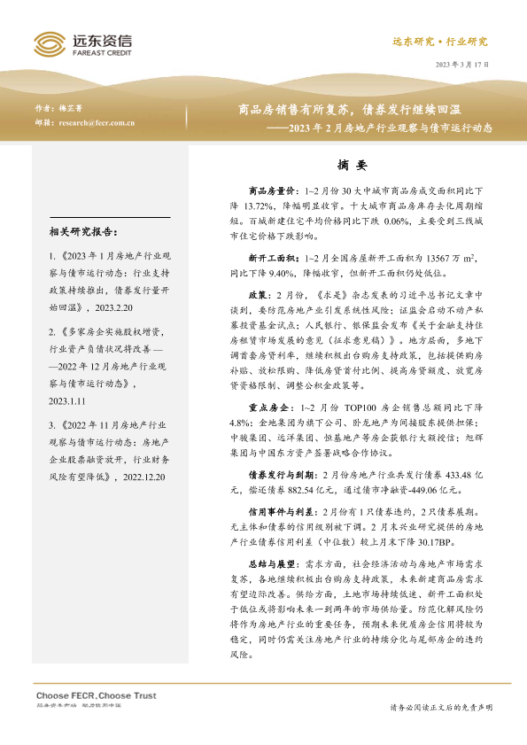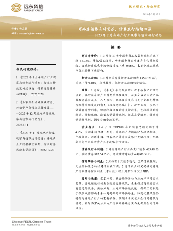 【远东资信】【20230317】2023年2月房地产行业观察与债市运行动态-23页