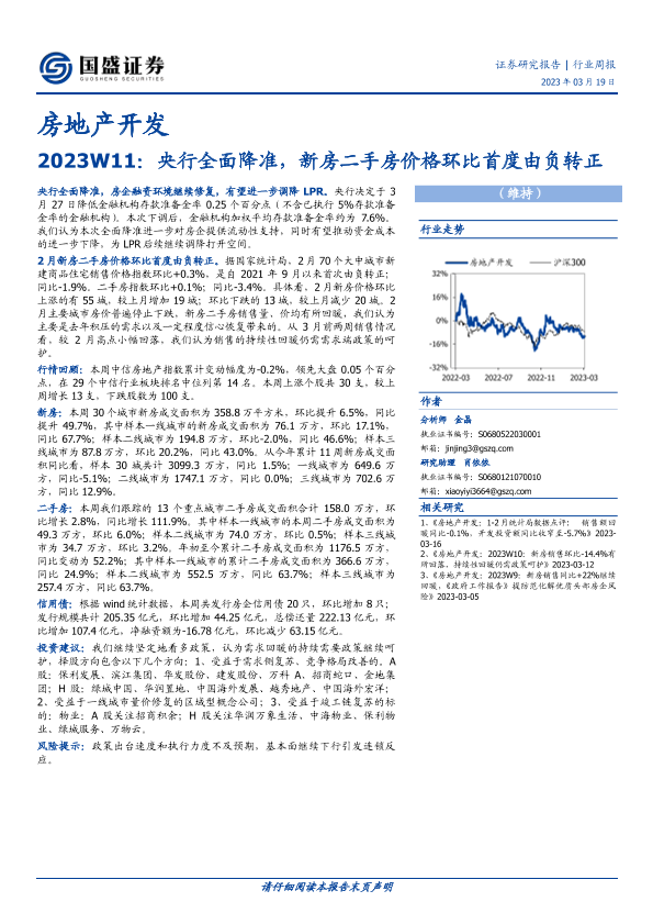 【国盛证券】【20230319】房地产开发2023W11:央行全面降准,新房二手房价格环比首度由负转正-14页