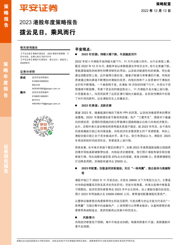 【平安证券】【20221213】2023港股年度策略报告:拨云见日,乘风而行-28页