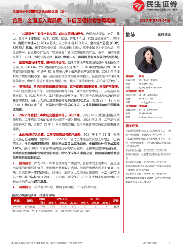 【民生证券】【20230324】合肥:全面迈入竞品质,节后回暖持续性需观察-18页