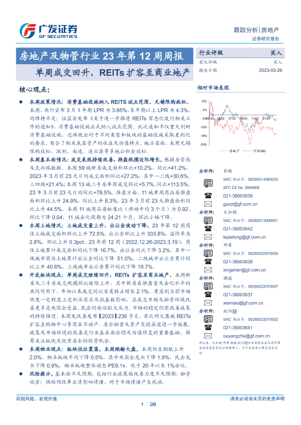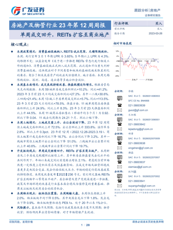 【广发证券】【20230326】2023年第12周周报:单周成交回升,REITs扩容至商业地产-28页