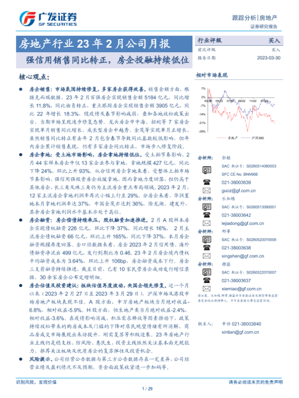【广发证券】【20230330】23年2月公司月报:强信用销售同比转正,房企投融持续低位-29页