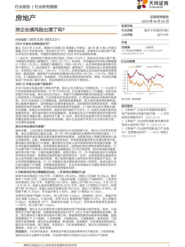 【天风证券】【20230402】房企业绩风险出清了吗?-18页
