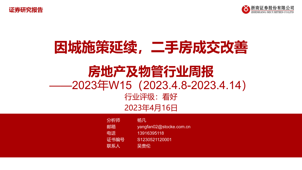 【浙商证券】【20230416】房地产及物管行业周报2023W15:因城施策延续,二手房成交改善-28页