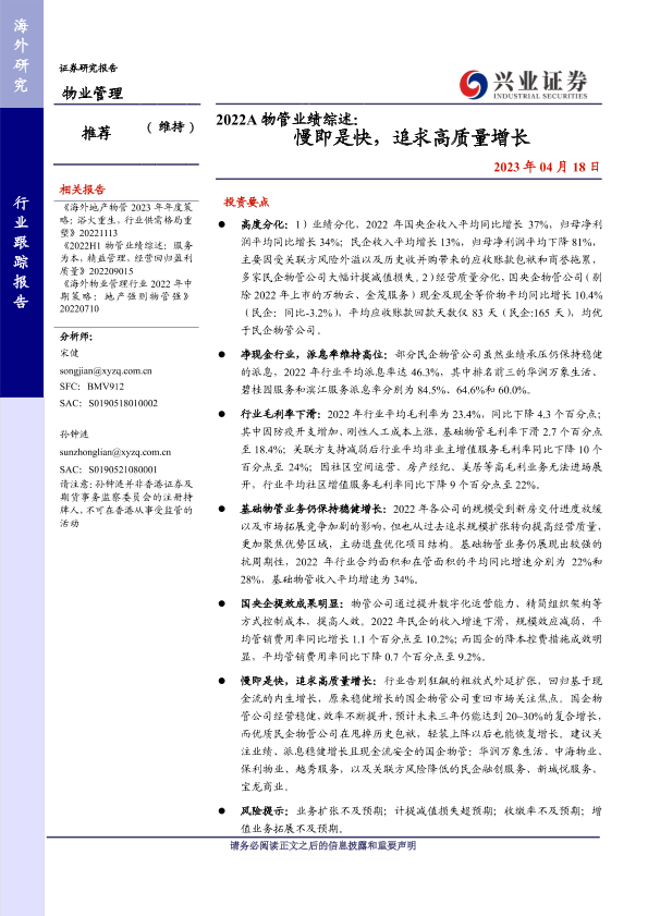 【兴业证券】【20230418】2022A物管业绩综述:慢即是快,追求高质量增长-14页