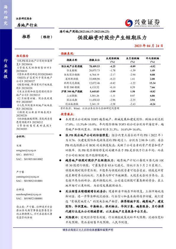 供股融资 周报 房地产行业 海外地产 股价影响