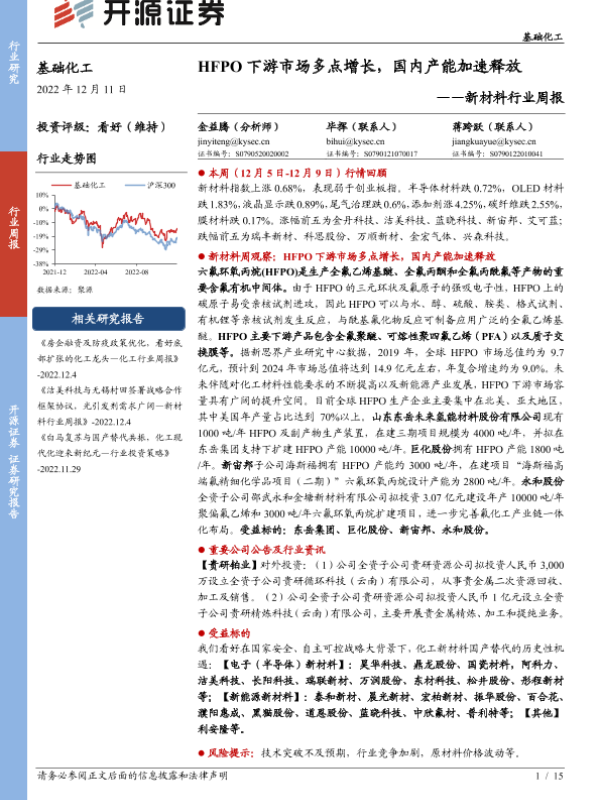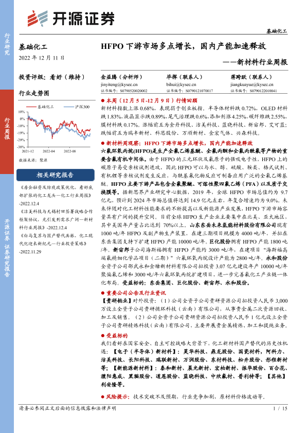 【开源证券】【20221211】HFPO 下游市场多点增长,国内产能加速释放-15页