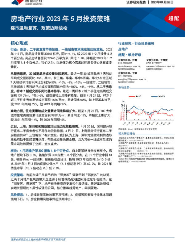【国信证券】【20230426】房地产行业2023年5月投资策略:楼市温和复苏,政策边际放松-11页