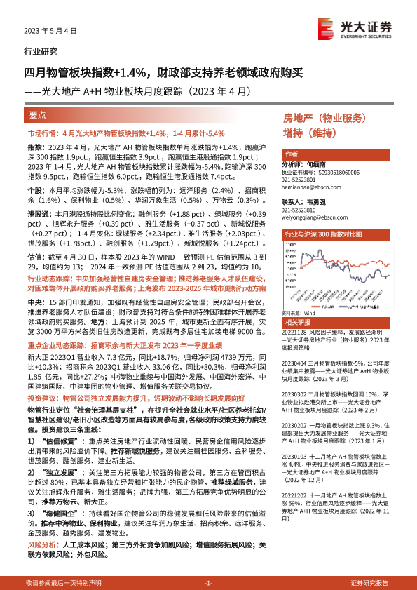 【光大证券】【20230504】四月物管板块指数+1.4%,财政部支持养老领域政府购买-12页