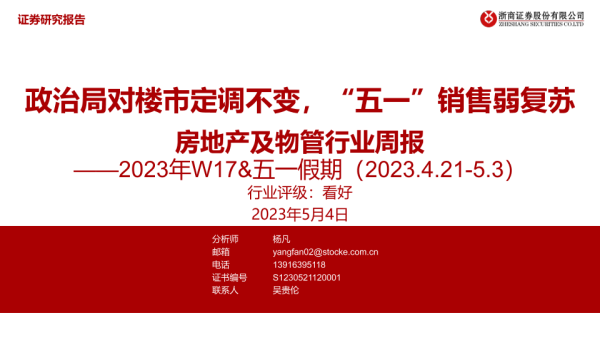【浙商证券】【20230504】2023年W17&五一假期房地产及物管行业周报-32页