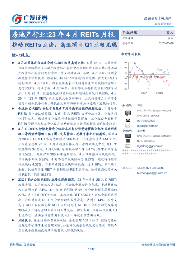 【广发证券】【20230509】23年4月REITs月报-推动REITs立法,高速项目Q1业绩兑现-39页